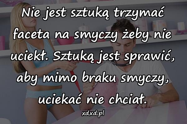 Nie jest sztuką trzymać faceta na smyczy żeby nie uciekł. Sztuką jest sprawić, aby mimo braku smyczy, uciekać nie chciał.