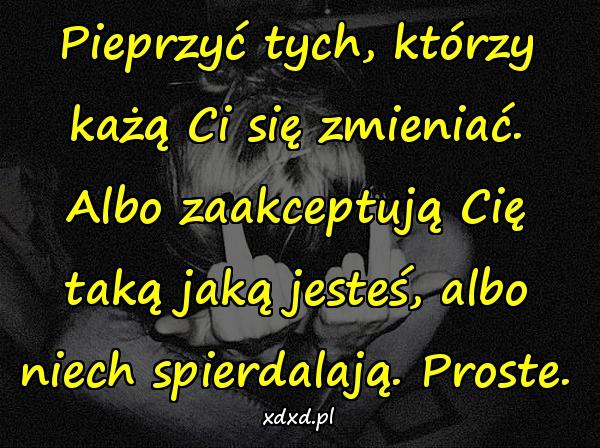 Pieprzyć tych, którzy każą Ci się zmieniać. Albo zaakceptują Cię taką jaką jesteś, albo niech spierdalają. Proste.