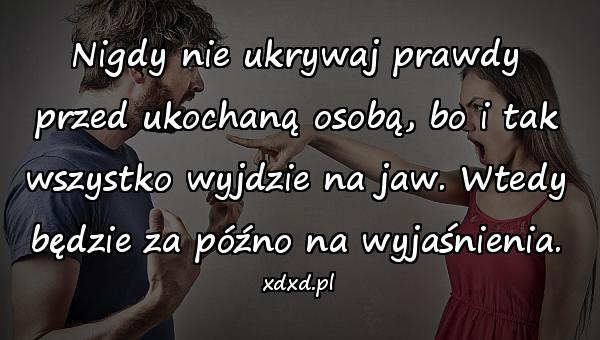 Nigdy nie ukrywaj prawdy przed ukochaną osobą, bo i tak wszystko wyjdzie na jaw. Wtedy będzie za późno na wyjaśnienia.