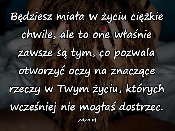 Będziesz miała w życiu ciężkie chwile, ale to one właśnie zawsze są tym, co pozwala otworzyć oczy na znaczące rzeczy w Twym życiu, których wcześniej nie mogłaś dostrzec.