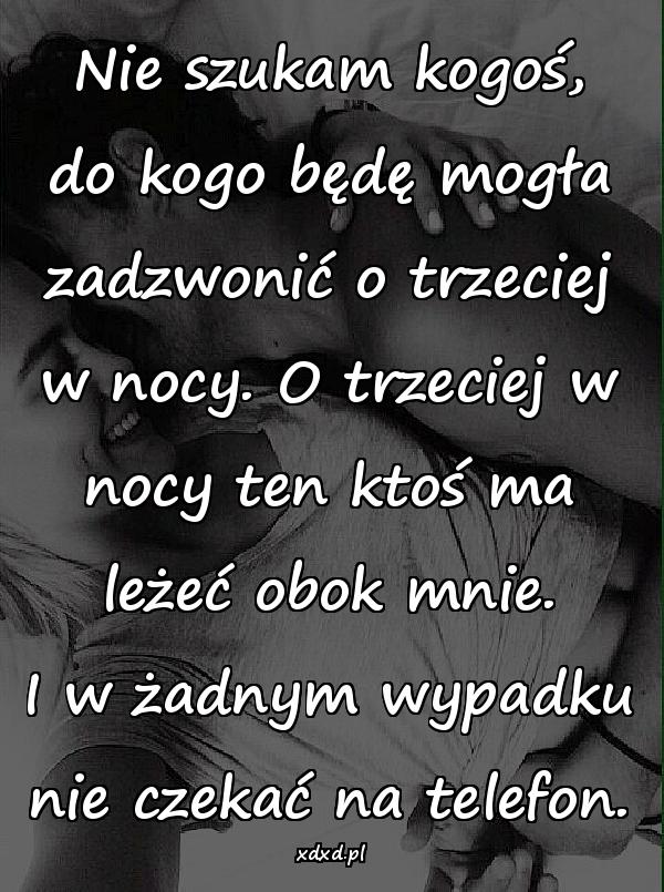 Nie szukam kogoś, do kogo będę mogła zadzwonić o trzeciej w nocy. O trzeciej w nocy ten ktoś ma leżeć obok mnie. I w żadnym wypadku nie czekać na telefon.