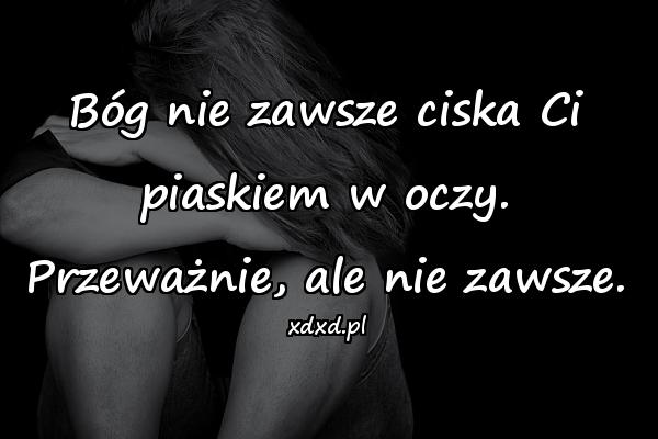 Home Cytaty Cytaty o życiu Bóg nie zawsze ciska Ci piaskiem w oczy 1 rok ago 1 rok ago Cytaty o życiu Bóg nie zawsze ciska Ci piaskiem w oczy autor: admin 15wyświetleń 831 831 points Bóg nie zawsze ciska Ci piaskiem w oczy. Przeważnie, ale nie zawsze. Pobierz obrazek Post PaginationPoprzedniPreviousNastępnyNext aforyzmy, besty, cytat, cytaty, cytaty o życiu, kłopoty, los, mem, memy, obrazki, problemy, przeznaczenie, sentencje, życie Twoja reakcja? zmieszany 0 zmieszany porażka 0 porażka zabawne 0 zabawne zły 0 zły miłośc 0 miłośc fajne 0 fajne lol 0 lol omg 0 omg 0 komentarzy Anuluj pisanie odpowiedziTwój adres e-mail nie zostanie opublikowany. Wymagane pola są oznaczone * Zapamiętaj moje dane w tej przeglądarce podczas pisania kolejnych komentarzy.