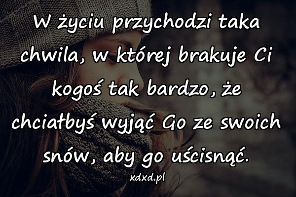 W życiu przychodzi taka chwila, w której brakuje Ci kogoś tak bardzo, że chciałbyś wyjąć Go ze swoich snów, aby go uścisnąć.