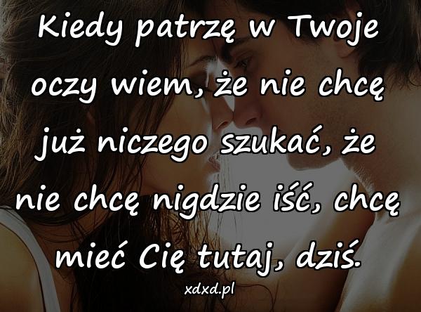 Kiedy patrzę w Twoje oczy wiem, że nie chcę już niczego szukać, że nie chcę nigdzie iść, chcę mieć Cię tutaj, dziś.
