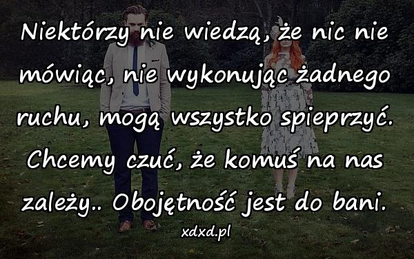 Niektórzy nie wiedzą, że nic nie mówiąc, nie wykonując żadnego ruchu, mogą wszystko spieprzyć. Chcemy czuć, że komuś na nas zależy.. Obojętność jest do bani.