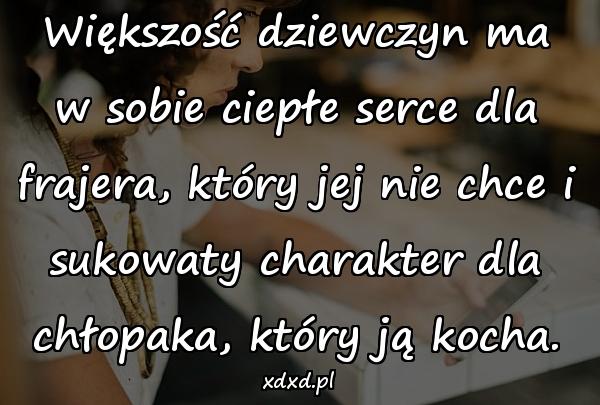 Większość dziewczyn ma w sobie ciepłe serce dla frajera, który jej nie chce i sukowaty charakter dla chłopaka, który ją kocha.