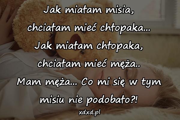 Jak miałam misia, chciałam mieć chłopaka… Jak miałam chłopaka, chciałam mieć męża.. Mam męża… Co mi się w tym misiu nie podobało?!