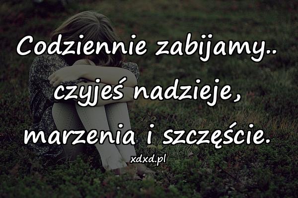 Home Cytaty Cytaty o życiu Codziennie zabijamy.. 2 lata ago 2 lata ago Cytaty o życiu Codziennie zabijamy.. autor: admin 12wyświetleń 812 812 points Codziennie zabijamy.. czyjeś nadzieje, marzenia i szczęście. Pobierz obrazek Post PaginationPoprzedniPreviousNastępnyNext aforyzmy, besty, cierpienie, cytat, cytaty, cytaty o życiu, lovsy, marzenia, mem, memy, nadzieje, obrazki, sentencje, szczęście, te myśli, życie Twoja reakcja? zmieszany 0 zmieszany porażka 0 porażka zabawne 0 zabawne zły 0 zły miłośc 0 miłośc fajne 0 fajne lol 0 lol omg 0 omg 0 komentarzy Anuluj pisanie odpowiedziTwój adres e-mail nie zostanie opublikowany. Wymagane pola są oznaczone * Zapamiętaj moje dane w tej przeglądarce podczas pisania kolejnych komentarzy.