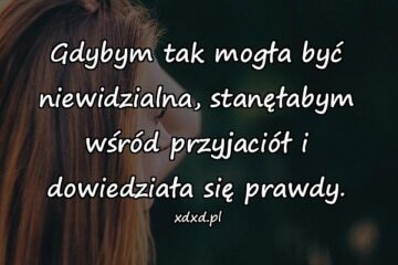 Gdybym tak mogła być niewidzialna, stanęłabym wśród przyjaciół i dowiedziała się prawdy.
