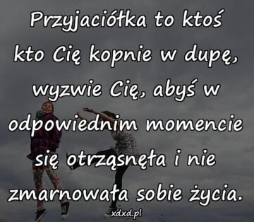 Przyjaciółka to ktoś kto Cię kopnie w dupę, wyzwie Cię, abyś w odpowiednim momencie się otrząsnęła i nie zmarnowała sobie życia.