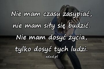 Nie mam czasu zasypiać, nie mam siły się budzić. Nie mam dosyć życia, tylko dosyć tych ludzi.