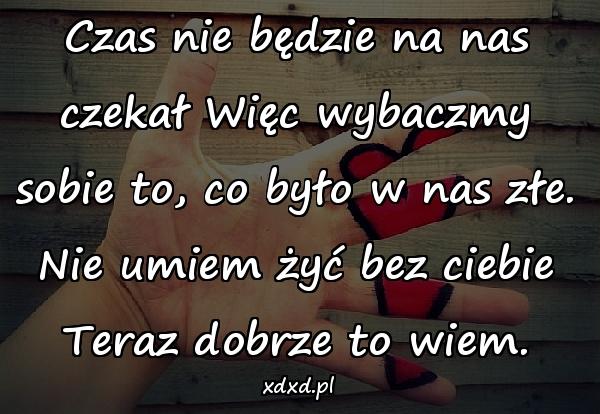 Czas nie będzie na nas czekał Więc wybaczmy sobie to, co było w nas złe. Nie umiem żyć bez ciebie Teraz dobrze to wiem.