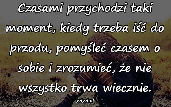 Czasami przychodzi taki moment, kiedy trzeba iść do przodu, pomyśleć czasem o sobie i zrozumieć, że nie wszystko trwa wiecznie.