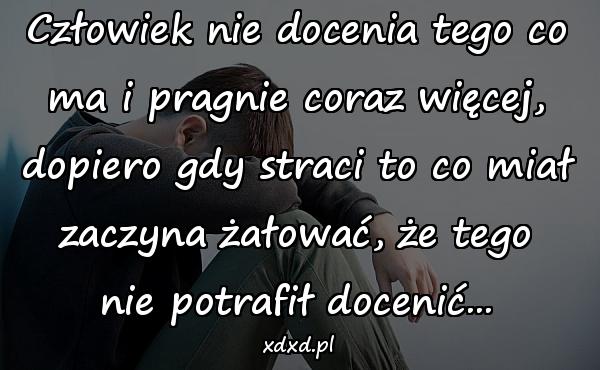Człowiek nie docenia tego co ma i pragnie coraz więcej, dopiero gdy straci to co miał zaczyna żałować, że tego nie potrafił docenić…