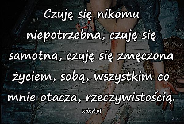 Czuję się nikomu niepotrzebna, czuję się samotna, czuję się zmęczona życiem, sobą, wszystkim co mnie otacza, rzeczywistością.