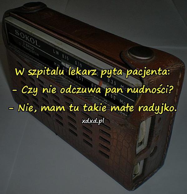 W szpitalu lekarz pyta pacjenta: – Czy nie odczuwa pan nudności? – Nie, mam tu takie małe radyjko.