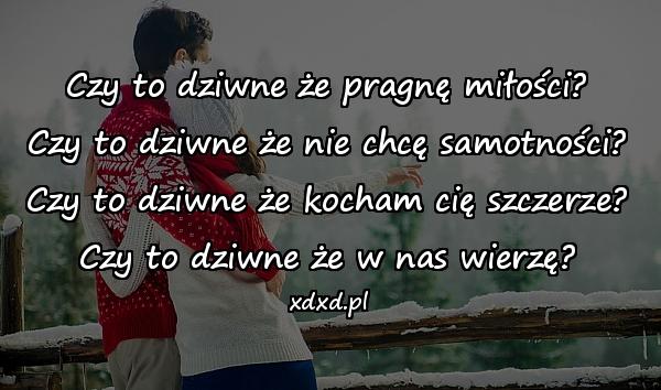 Czy to dziwne że pragnę miłości? Czy to dziwne że nie chcę samotności? Czy to dziwne że kocham cię szczerze? Czy to dziwne że w nas wierzę?