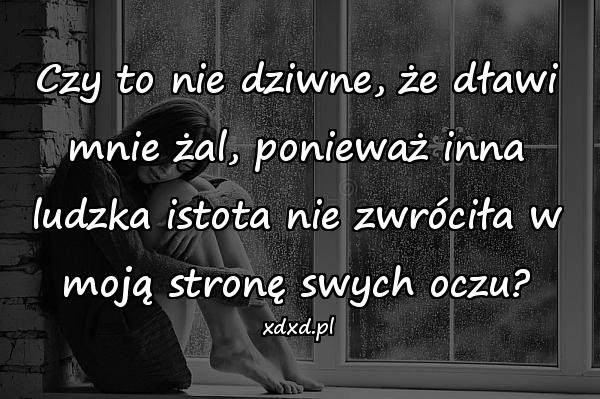 Czy to nie dziwne, że dławi mnie żal, ponieważ inna ludzka istota nie zwróciła w moją stronę swych oczu?