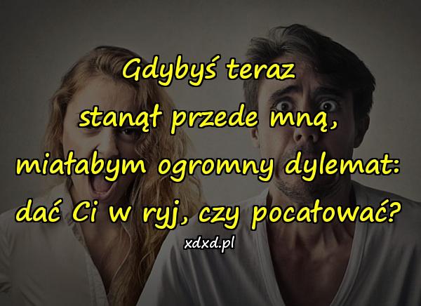 Home Cytaty Cytaty o życiu Dać Ci w ryj, czy pocałować? 4 lata ago 4 lata ago Cytaty o życiu Dać Ci w ryj, czy pocałować? autor: admin 6wyświetleń 822 822 points Gdybyś teraz stanął przede mną, miałabym ogromny dylemat: dać Ci w ryj, czy pocałować? Pobierz obrazek Post PaginationPoprzedniPreviousNastępnyNext aforyzmy, besty, cytat, cytaty, cytaty o życiu, dylematy, kobieta, kwejk, lovsy, mem, memy, obrazki, sentencje, te myśli, wybory, życie Twoja reakcja? zmieszany 0 zmieszany porażka 0 porażka zabawne 0 zabawne zły 0 zły miłośc 0 miłośc fajne 0 fajne lol 0 lol omg 0 omg 0 komentarzy Anuluj pisanie odpowiedziTwój adres e-mail nie zostanie opublikowany. Wymagane pola są oznaczone * Zapamiętaj moje dane w tej przeglądarce podczas pisania kolejnych komentarzy.