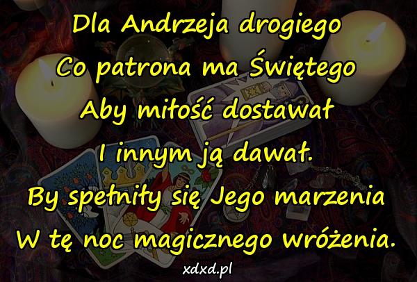 Dla Andrzeja drogiego Co patrona ma Świętego Aby miłość dostawał I innym ją dawał. By spełniły się Jego marzenia W tę noc magicznego wróżenia.
