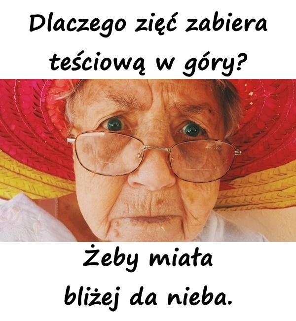 Home Humor Kawały dowcipy Dlaczego zięć zabiera teściową w góry? 3 lata ago 3 lata ago Kawały dowcipy Dlaczego zięć zabiera teściową w góry? autor: admin 5wyświetleń 834 834 points Dlaczego zięć zabiera teściową w góry? Żeby miała bliżej da nieba. Pobierz obrazek Post PaginationPoprzedniPreviousNastępnyNext besty, dowcip, dowcipy, góry, humor, kawał, kawały, mem, memy, niebo, śmieszne, śmieszne obrazki, teściowa, żart, żarty Twoja reakcja? zmieszany 0 zmieszany porażka 0 porażka zabawne 0 zabawne zły 0 zły miłośc 0 miłośc fajne 0 fajne lol 0 lol omg 0 omg 0 komentarzy Anuluj pisanie odpowiedziTwój adres e-mail nie zostanie opublikowany. Wymagane pola są oznaczone * Zapamiętaj moje dane w tej przeglądarce podczas pisania kolejnych komentarzy.