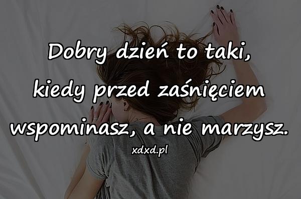 Dobry dzień to taki, kiedy przed zaśnięciem wspominasz, a nie marzysz.