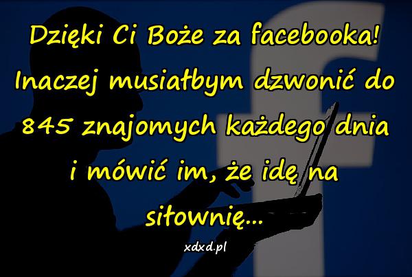 Dzięki Ci Boże za facebooka! Inaczej musiałbym dzwonić do 845 znajomych każdego dnia i mówić im, że idę na siłownię…