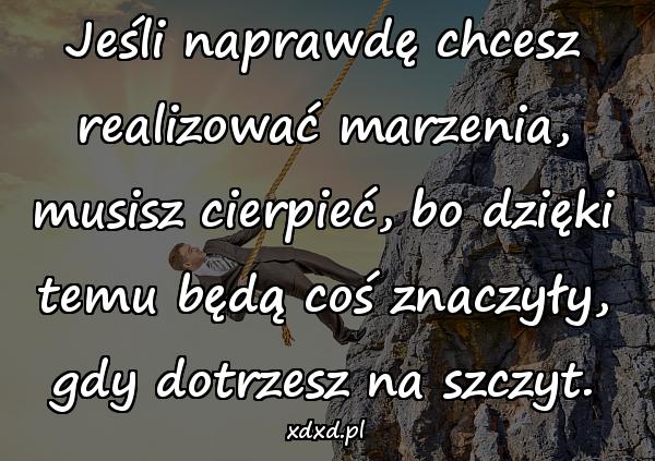 Jeśli naprawdę chcesz realizować marzenia, musisz cierpieć, bo dzięki temu będą coś znaczyły, gdy dotrzesz na szczyt.