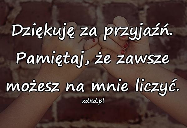 Dziękuję za przyjaźń. Pamiętaj, że zawsze możesz na mnie liczyć.