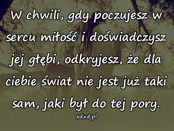 W chwili, gdy poczujesz w sercu miłość i doświadczysz jej głębi, odkryjesz, że dla ciebie świat nie jest już taki sam, jaki był do tej pory.