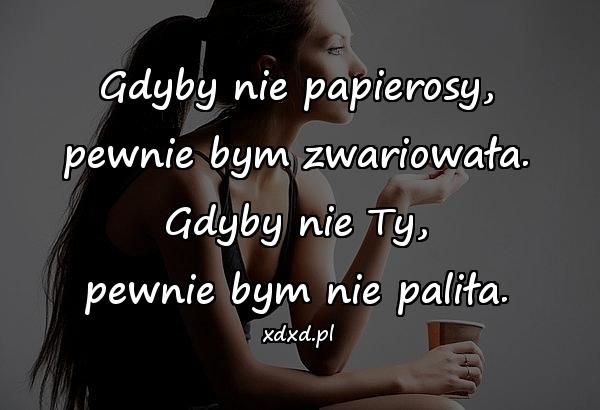 Gdyby nie papierosy, pewnie bym zwariowała. Gdyby nie Ty, pewnie bym nie paliła.