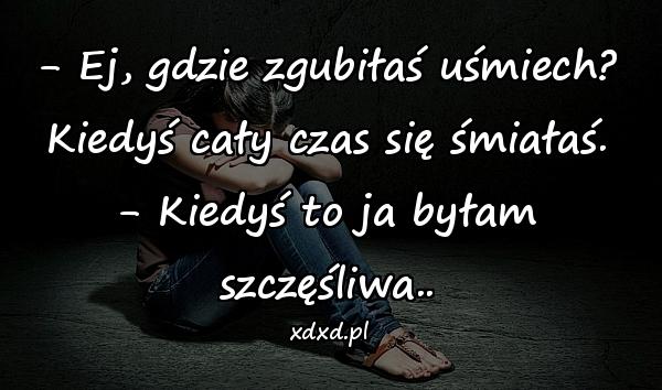 – Ej, gdzie zgubiłaś uśmiech? Kiedyś cały czas się śmiałaś. – Kiedyś to ja byłam szczęśliwa..