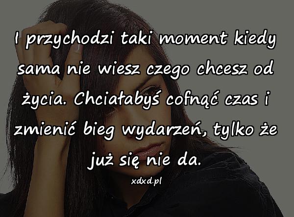 I przychodzi taki moment kiedy sama nie wiesz czego chcesz od życia. Chciałabyś cofnąć czas i zmienić bieg wydarzeń, tylko że już się nie da.