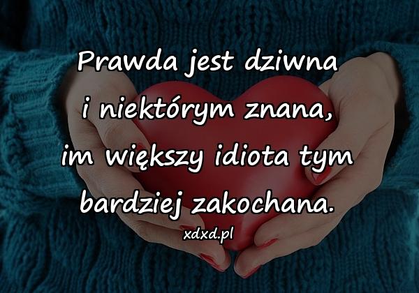 Home Cytaty Cytaty o miłości Im większy idiota tym bardziej zakochana 2 lata ago 2 lata ago Cytaty o miłości Im większy idiota tym bardziej zakochana autor: admin 5wyświetleń 832 832 points Prawda jest dziwna i niektórym znana, im większy idiota tym bardziej zakochana. Pobierz obrazek Post PaginationPoprzedniPreviousNastępnyNext aforyzmy, besty, cytat, cytaty, cytaty o miłości, ideał, idiota, mem, memy, miłość, obrazki, sentencje, uczucia, zakochana Twoja reakcja? zmieszany 0 zmieszany porażka 0 porażka zabawne 0 zabawne zły 0 zły miłośc 0 miłośc fajne 0 fajne lol 0 lol omg 0 omg 0 komentarzy Anuluj pisanie odpowiedziTwój adres e-mail nie zostanie opublikowany. Wymagane pola są oznaczone * Zapamiętaj moje dane w tej przeglądarce podczas pisania kolejnych komentarzy.
