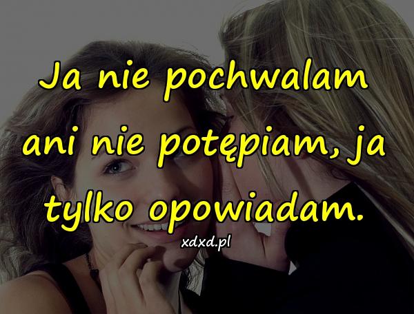 Ja nie pochwalam ani nie potępiam, ja tylko opowiadam.