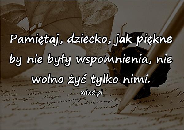 Home Cytaty Cytaty o życiu Jak piękne by nie były wspomnienia 1 rok ago 1 rok ago Cytaty o życiu Jak piękne by nie były wspomnienia autor: admin 21wyświetleń 827 827 points Pamiętaj, dziecko, jak piękne by nie były wspomnienia, nie wolno żyć tylko nimi. Pobierz obrazek Post PaginationPoprzedniPreviousNastępnyNext aforyzmy, besty, cytat, cytaty, cytaty o życiu, mem, memy, obrazki, rzeczywistość, sentencje, wspomnienia, życie Twoja reakcja? zmieszany 0 zmieszany porażka 0 porażka zabawne 0 zabawne zły 0 zły miłośc 0 miłośc fajne 0 fajne lol 0 lol omg 0 omg 0 komentarzy Anuluj pisanie odpowiedziTwój adres e-mail nie zostanie opublikowany. Wymagane pola są oznaczone * Zapamiętaj moje dane w tej przeglądarce podczas pisania kolejnych komentarzy.