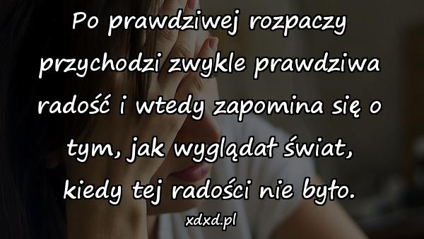 Po prawdziwej rozpaczy przychodzi zwykle prawdziwa radość i wtedy zapomina się o tym, jak wyglądał świat, kiedy tej radości nie było.