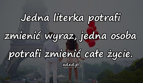 Home Cytaty Cytaty o miłości Jedna osoba potrafi zmienić całe życie 1 rok ago 1 rok ago Cytaty o miłości Jedna osoba potrafi zmienić całe życie autor: admin 13wyświetleń 832 832 points Jedna literka potrafi zmienić wyraz, jedna osoba potrafi zmienić całe życie. Pobierz obrazek Post PaginationPoprzedniPreviousNastępnyNext aforyzmy, besty, cytat, cytaty, cytaty o miłości, los, mem, memy, miłość, obrazki, przeznaczenie, sentencje, uczucia, zakochanie, zmiana, życie Twoja reakcja? zmieszany 0 zmieszany porażka 0 porażka zabawne 0 zabawne zły 0 zły miłośc 0 miłośc fajne 0 fajne lol 0 lol omg 0 omg 0 komentarzy Anuluj pisanie odpowiedziTwój adres e-mail nie zostanie opublikowany. Wymagane pola są oznaczone * Zapamiętaj moje dane w tej przeglądarce podczas pisania kolejnych komentarzy.