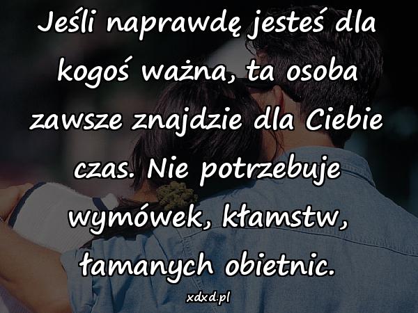 Jeśli naprawdę jesteś dla kogoś ważna, ta osoba zawsze znajdzie dla Ciebie czas. Nie potrzebuje wymówek, kłamstw, łamanych obietnic.