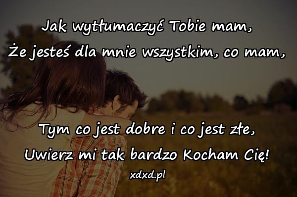 Jak wytłumaczyć Tobie mam, Że jesteś dla mnie wszystkim, co mam, Tym co jest dobre i co jest złe, Uwierz mi tak bardzo Kocham Cię!