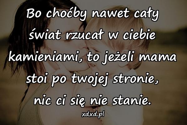 Bo choćby nawet cały świat rzucał w ciebie kamieniami, to jeżeli mama stoi po twojej stronie, nic ci się nie stanie.