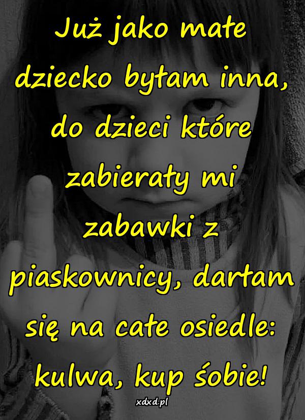 Już jako małe dziecko byłam inna, do dzieci które zabierały mi zabawki z piaskownicy, darłam się na całe osiedle: kulwa, kup śobie!