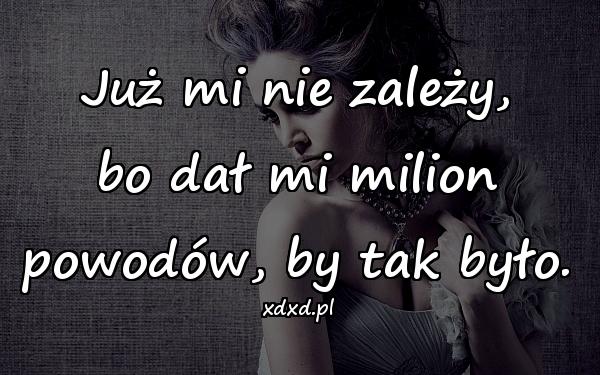 Już mi nie zależy, bo dał mi milion powodów, by tak było.