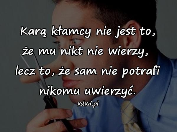 Home Cytaty Cytaty o życiu Kara dla kłamcy 1 rok ago 1 rok ago Cytaty o życiu Kara dla kłamcy autor: admin 18wyświetleń 807 807 points Karą kłamcy nie jest to, że mu nikt nie wierzy, lecz to, że sam nie potrafi nikomu uwierzyć. Pobierz obrazek Post PaginationPoprzedniPreviousNastępnyNext aforyzmy, besty, cytat, cytaty, cytaty o życiu, kara, kłamca, mem, memy, niedowiarek, obrazki, sentencje, życie Twoja reakcja? zmieszany 0 zmieszany porażka 0 porażka zabawne 0 zabawne zły 0 zły miłośc 0 miłośc fajne 0 fajne lol 0 lol omg 0 omg 0 komentarzy Anuluj pisanie odpowiedziTwój adres e-mail nie zostanie opublikowany. Wymagane pola są oznaczone * Zapamiętaj moje dane w tej przeglądarce podczas pisania kolejnych komentarzy.