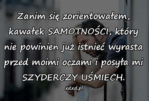 Zanim się zorientowałem, kawałek SAMOTNOŚCI, który nie powinien już istnieć wyrasta przed moimi oczami i posyła mi SZYDERCZY UŚMIECH.