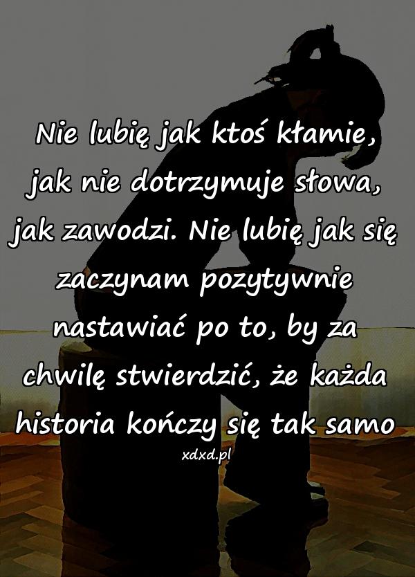 Nie lubię jak ktoś kłamie, jak nie dotrzymuje słowa, jak zawodzi. Nie lubię jak się zaczynam pozytywnie nastawiać po to, by za chwilę stwierdzić, że każda historia kończy się tak samo