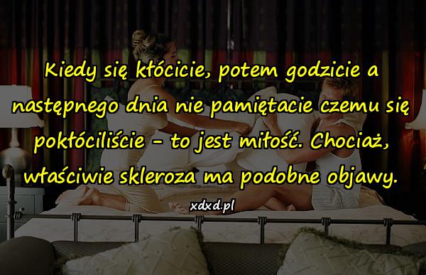 Kiedy się kłócicie, potem godzicie a następnego dnia nie pamiętacie czemu się pokłóciliście – to jest miłość. Chociaż, właściwie skleroza ma podobne objawy.