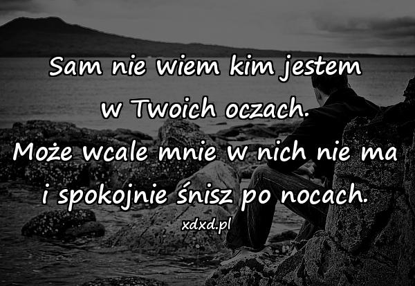 Sam nie wiem kim jestem w Twoich oczach. Może wcale mnie w nich nie ma i spokojnie śnisz po nocach.