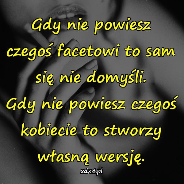 Gdy nie powiesz czegoś facetowi to sam się nie domyśli. Gdy nie powiesz czegoś kobiecie to stworzy własną wersję.