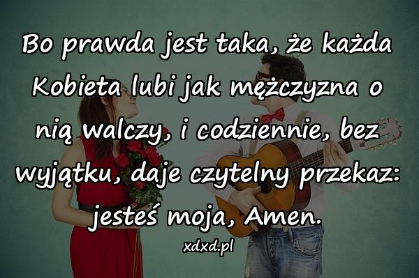 Bo prawda jest taka, że każda Kobieta lubi jak mężczyzna o nią walczy, i codziennie, bez wyjątku, daje czytelny przekaz: jesteś moja, Amen.